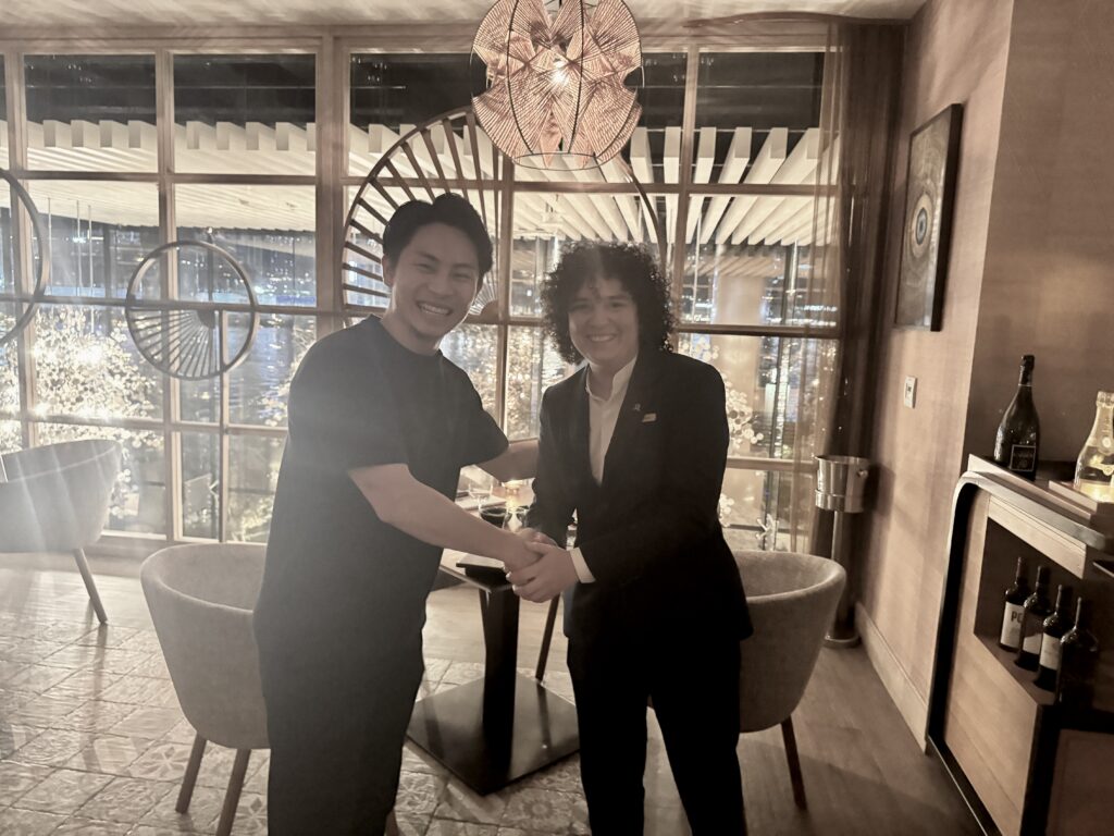 TABŪ DUBAI/セントレジスの最高責任者のMs.Aishaと固い握手を交わす